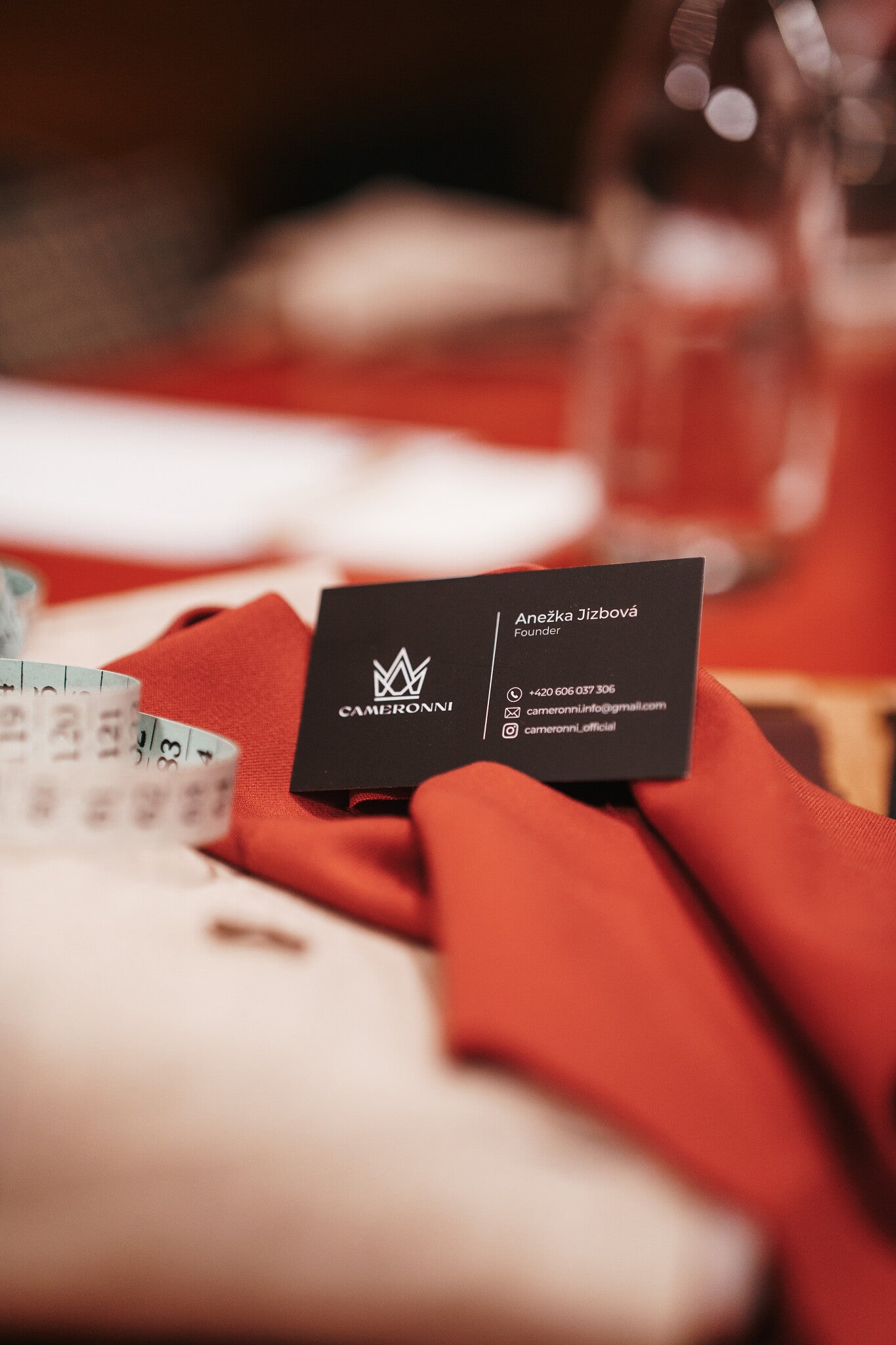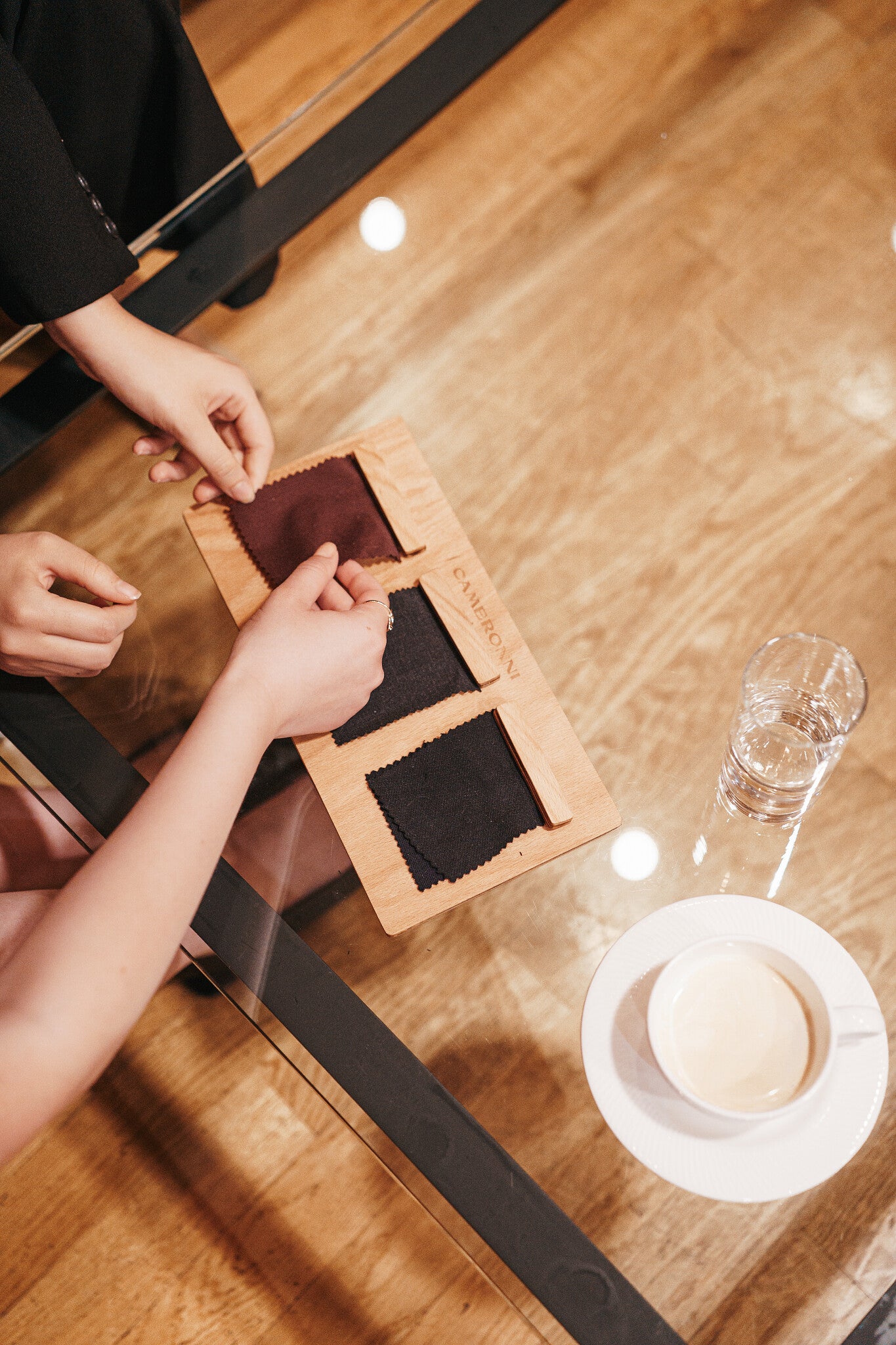 Na druhé schůzce společně projdeme připravené návrhy a vybereme vhodnou látku na základě barevné typologie. Poté si provedeme měření a probereme detaily, jako je přidání loga nebo iniciál.